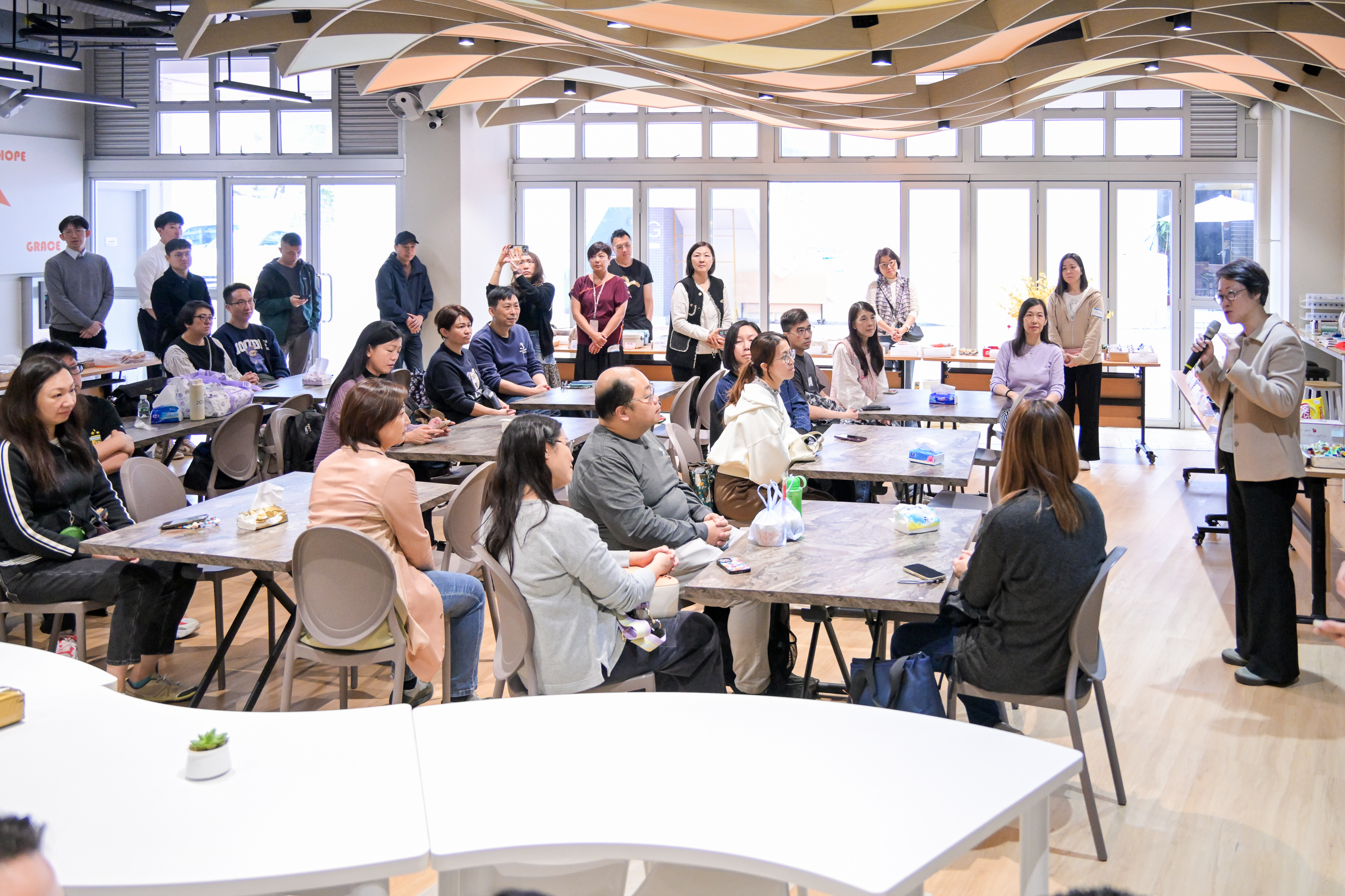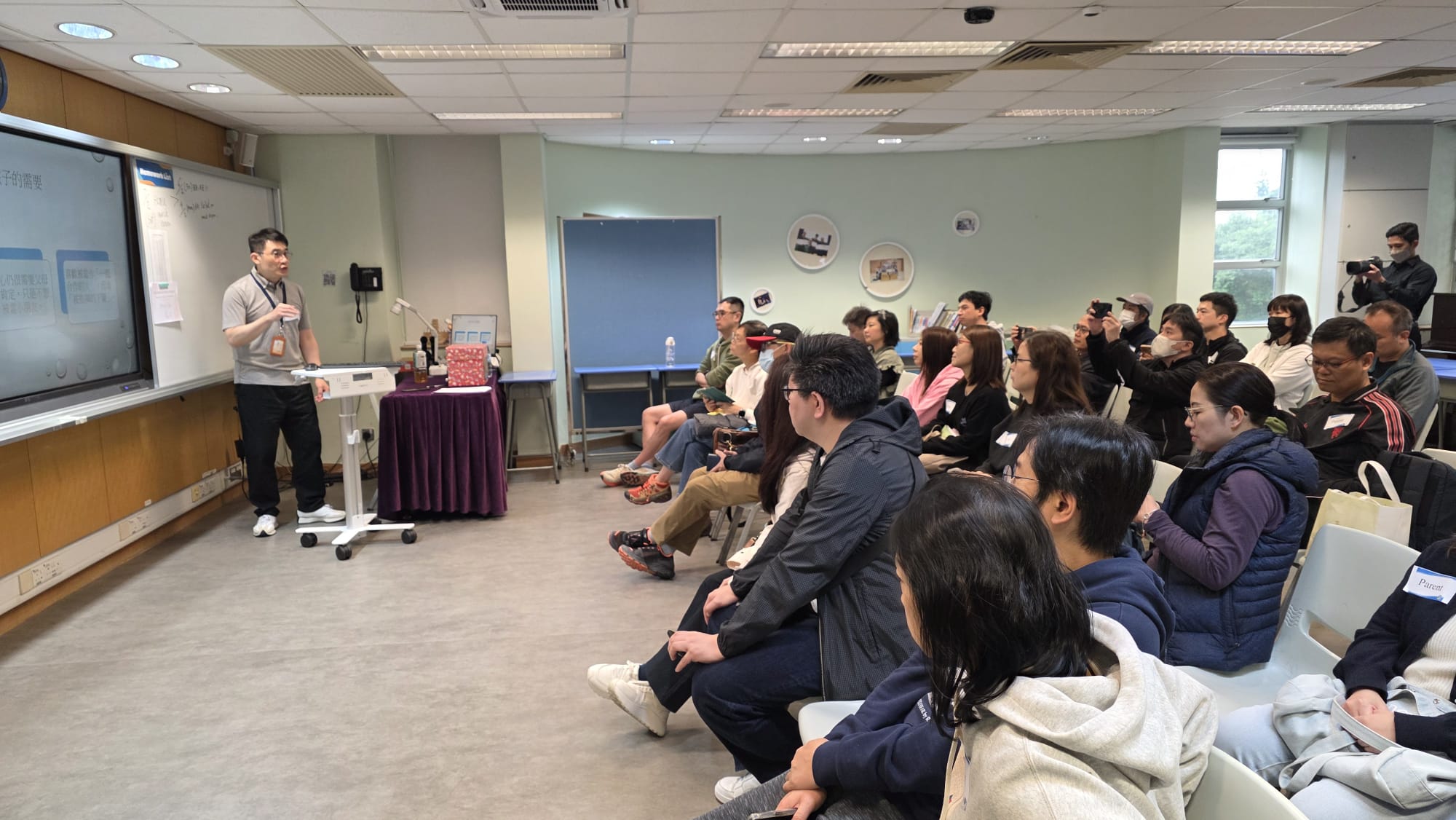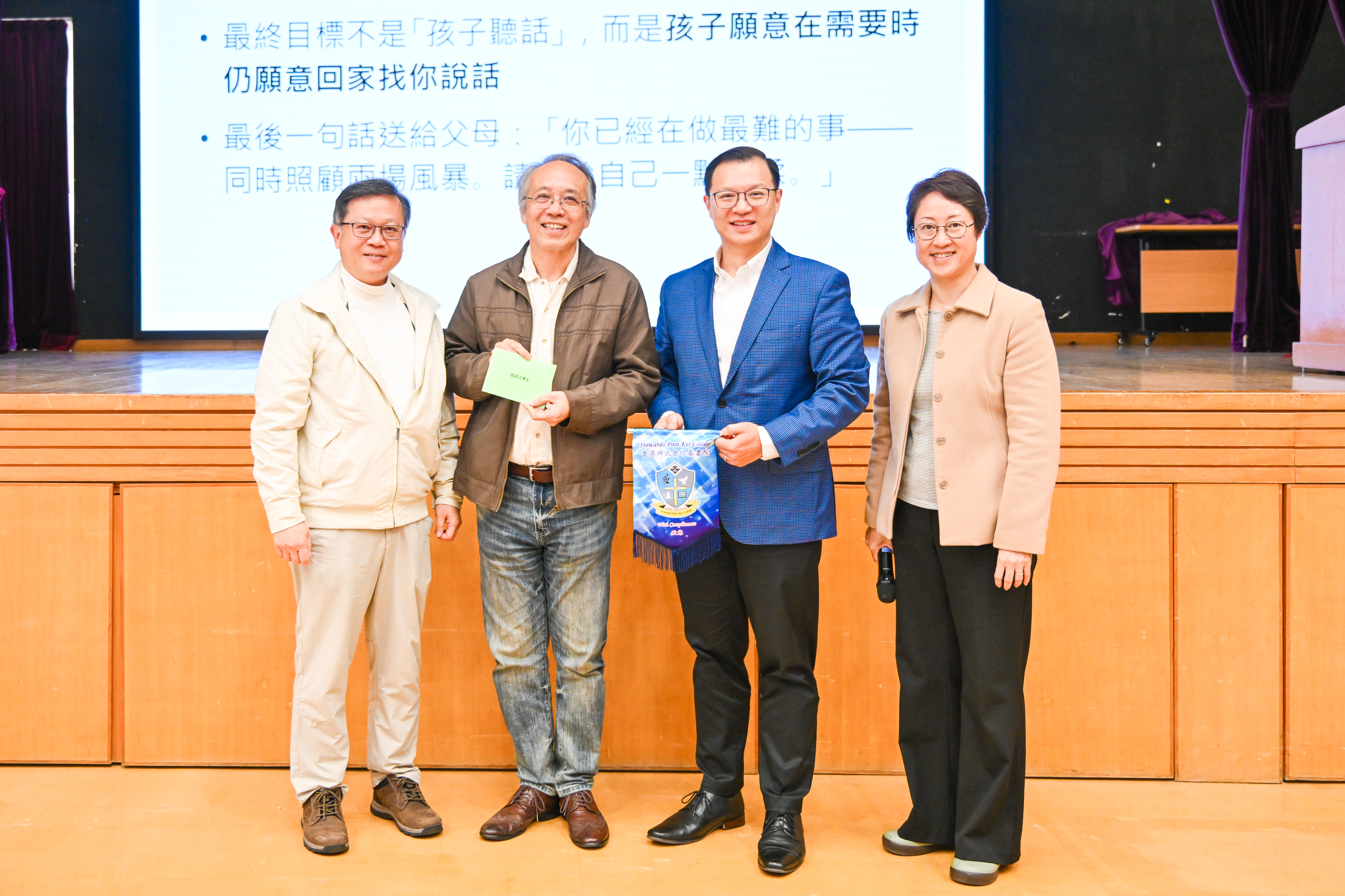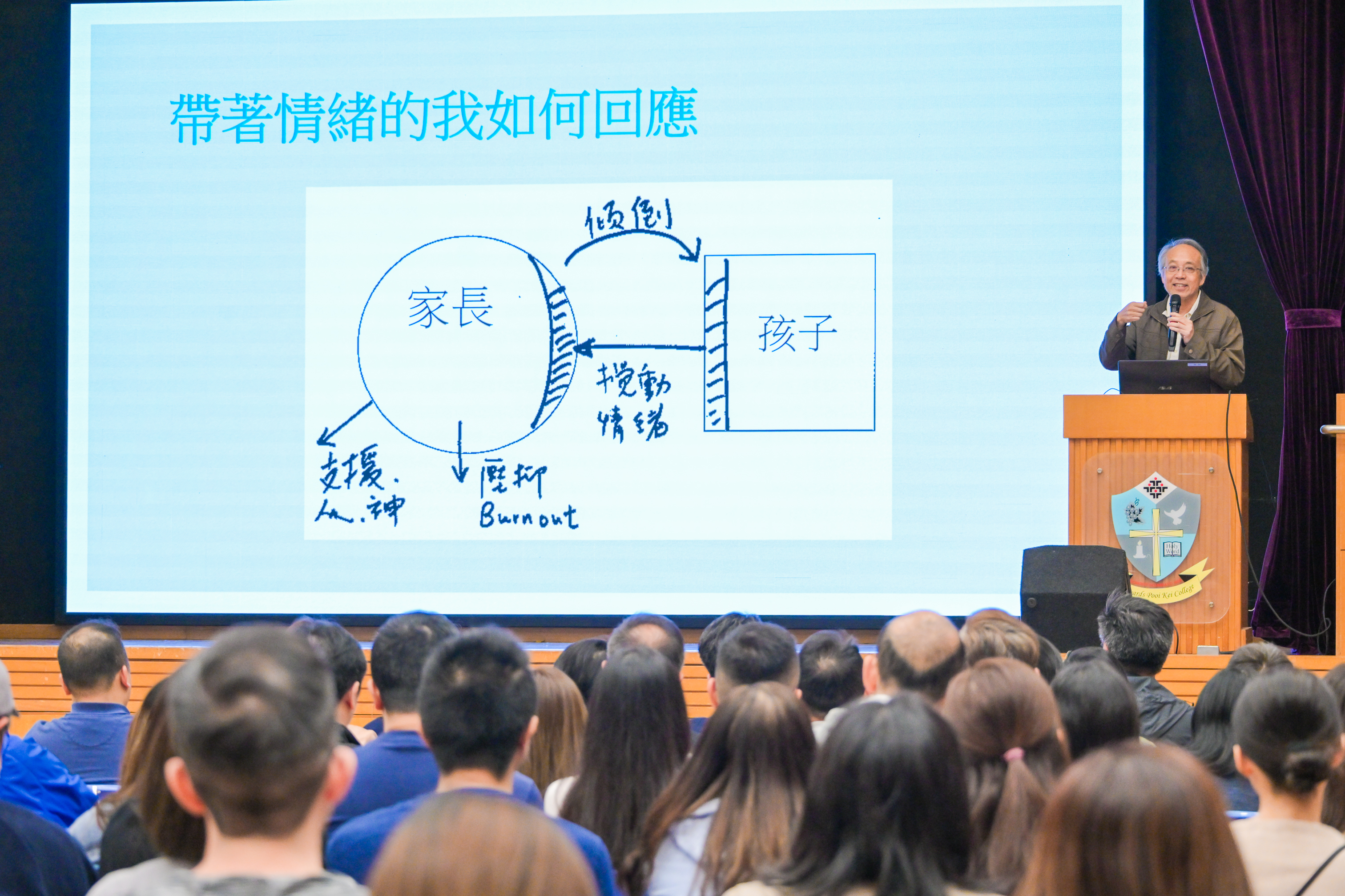 主題講座屬「家長同行計劃」的活動之一,題為「當更年期遇上青春期:認識子女的性格類型及相處之道」,由區祥江博士主講。區博士著作等身,講解經驗豐富,內容深入淺出,除理論分享外,更設分組討論環節,參加者積極交流,討論氣氛熱烈,讓大家對跨代相處有了更深的體會。