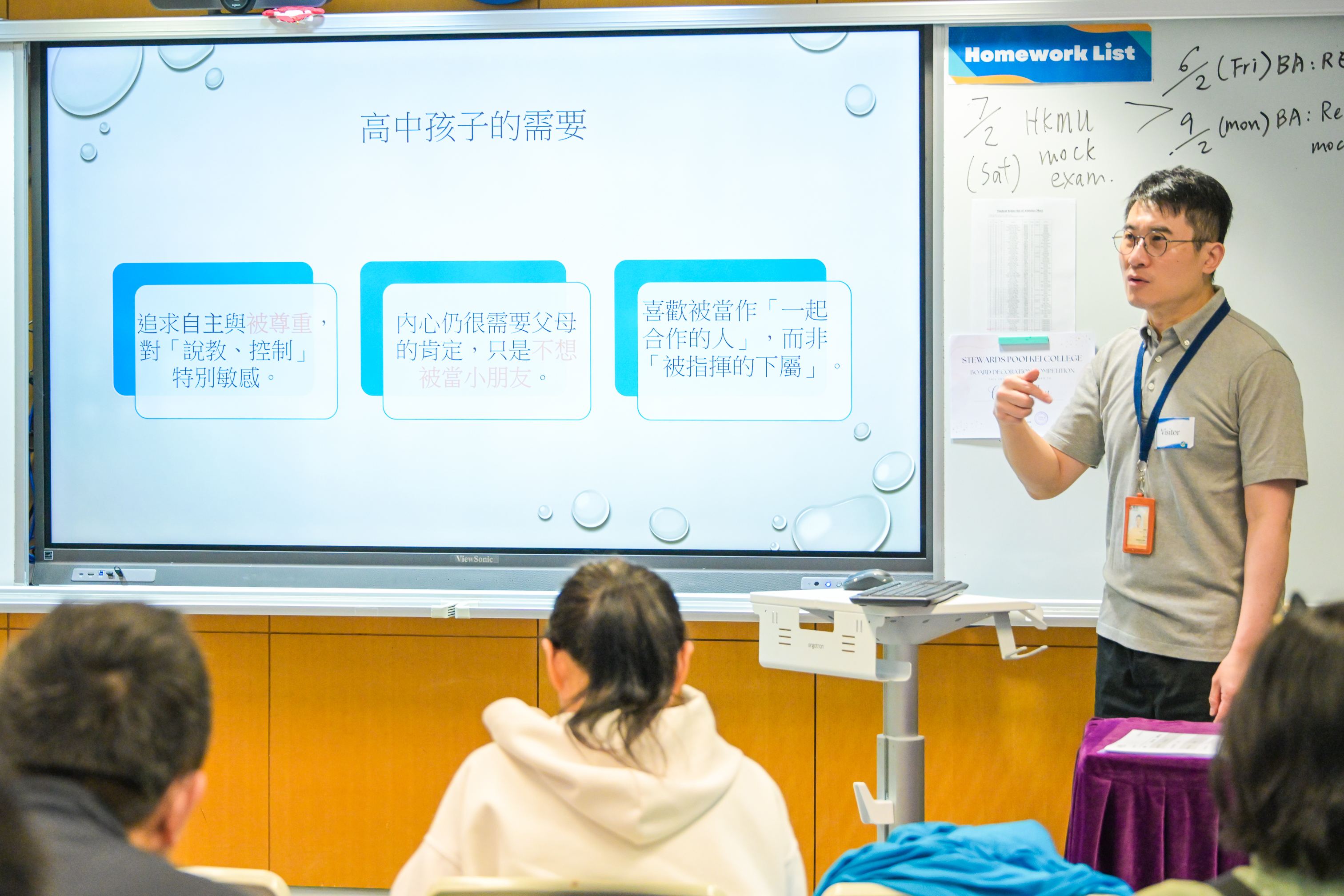 首場活動為工作坊,主題為「讚賞孩子的方法」,由註冊社工滕琴子先生主講。滕先生具豐富青少年輔導經驗,理論與實踐並重,既講解青少年腦部發展,亦設即場練習,引導家長以具體言辭肯定孩子表現。參加者投入學習,積極嘗試,掌握了不少實用的讚賞技巧。