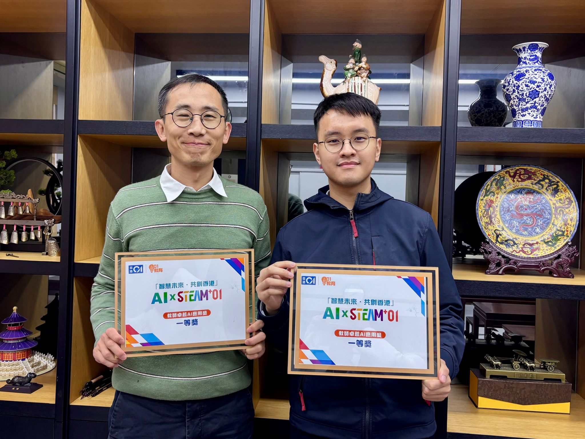 中文科黃秋強老師及陳梓朗老師,於2026年1月24日(六)舉行的香港01「AI x STEAM+01」教育獎項頒獎禮暨高峰論壇中,榮獲「AI x STEAM+01 教師卓越 AI 應用獎(一等獎)」,以表揚他們在人工智能教育應用及教學創新方面的卓越表現。